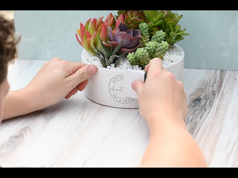 Custom Branded Gifts to make your brand shine. Beautiful hand-picked succulents in large 4' or 8' inch-wide white ceramic pots. Each succulent garden is planted 24 hours before delivery in soil and rock. Free shipping & custom note cards.