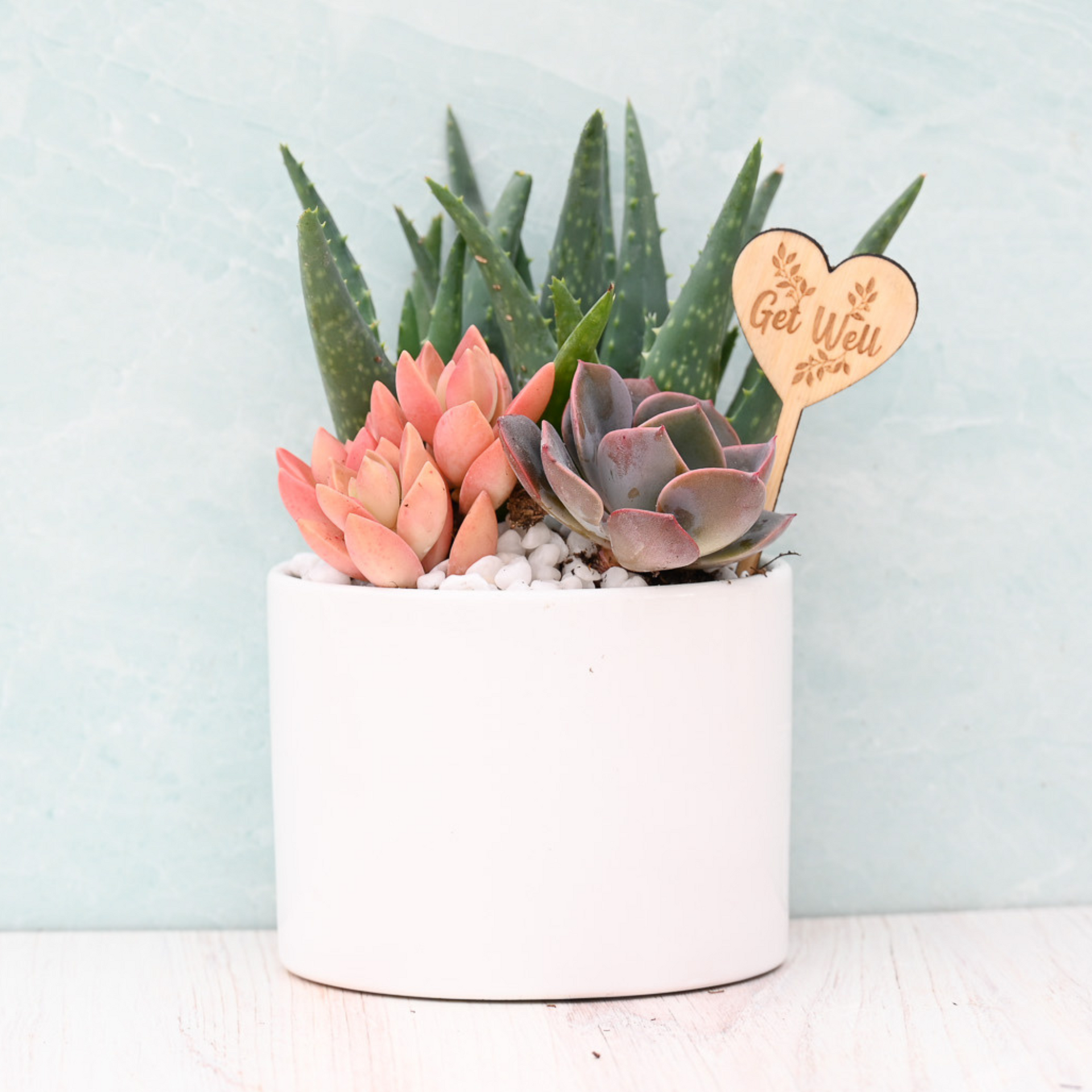 Get well soon health and wellness succulent gifts with hand picked succulent arrangments. Free FedEx 2-Day Shipping & Custom Gift Note.